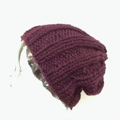 Cast on 48 stitches and K2, P2 around until the piece is 8-10 inches deep - this will allow you to choose the amount of 'slouch' you'd like.