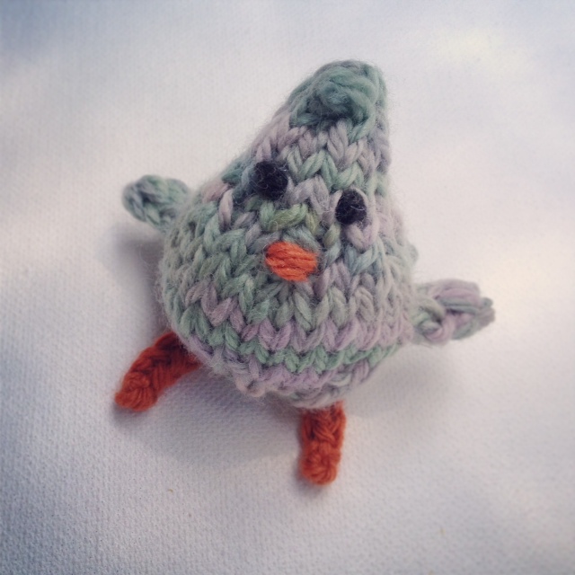 In making these little cuties, I've come up with a quick add-on tail for them. You can easily use different colors and skip the comb at the top of their head to have the look of many other birds. Below is my version of a pigeon, made using this very pattern.