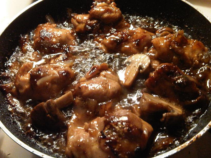 ORGANIC CHICKEN SAUTEED IN A PEACH BALSAMIC REDUCTION SAUCE WITH CRIMINI MUSHROOMS