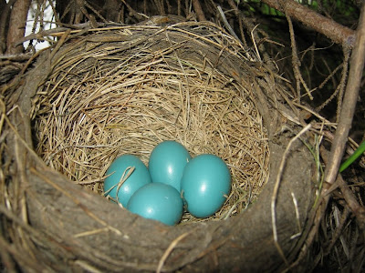 It's been some time since my last post and I have a few updated photos to share with you. Aren't they cute? One day soon, they're going to look just like their Mama. All four of them are growing fast and starting to resemble robins.