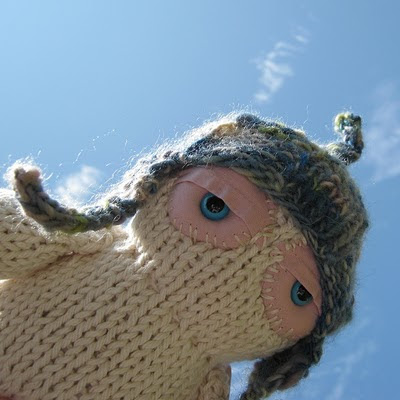 He loves to cuddle and his button jointed arms help him hug back. Walter sits or stands and keeps warm with a hand knit cabled Mushishi ogre hat.