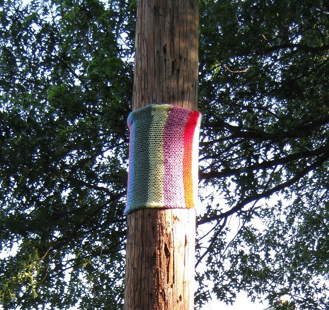 art display Mt. Holly NJ pole public stripes telephone yarnbombing